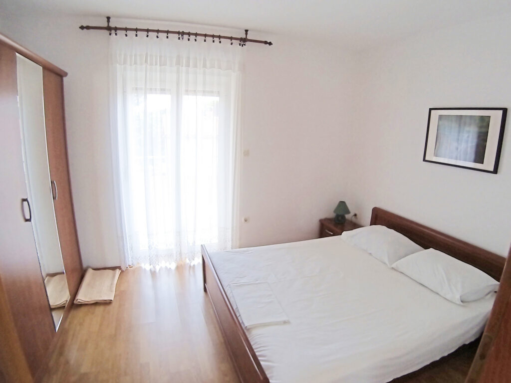 The apartment is located on the second floor. It has one bedroom, kitchen with living room, bathroom and a terrace on the south side overlooking the sea and the other common terrace on the north side and a view of the garden.